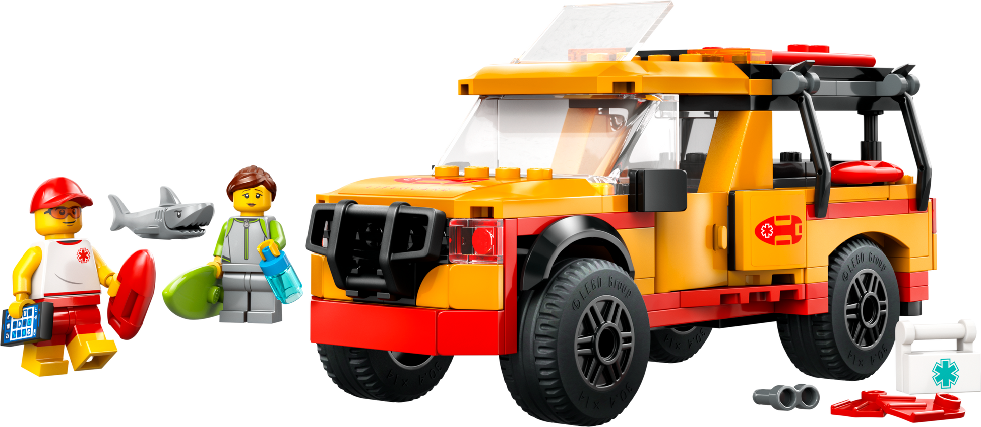 Lifeguard truck playset – Kids can dive into action-packed seashore adventures with the LEGO® City Lifeguard Beach Rescue Truck set for boys and girls aged 6 and up
