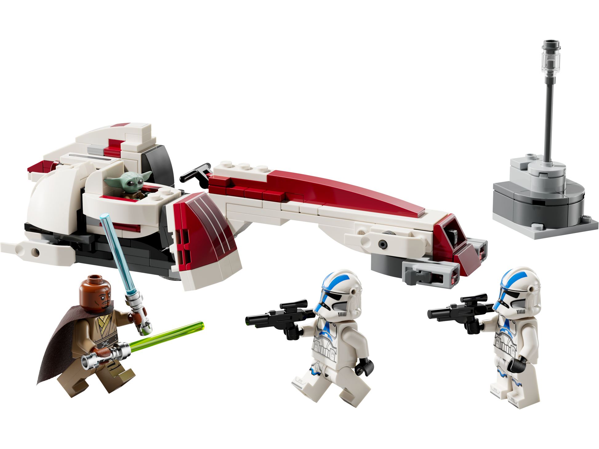 Detailed Star Wars™ BARC speeder bike buildable toy – Features a minifigure cockpit, 2 stud shooters and a detachable sidecar with space for Grogu’s buildable hover pram