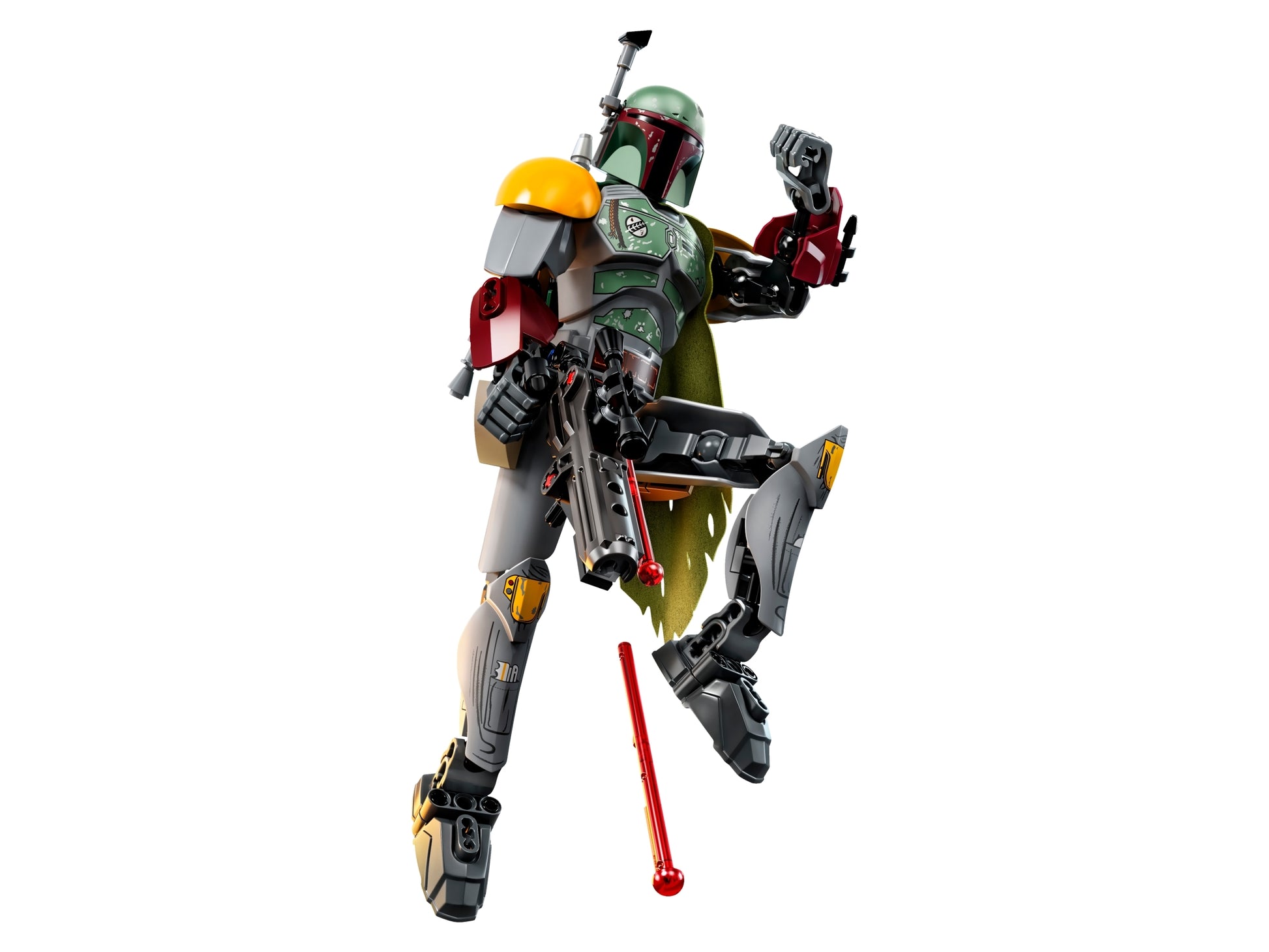 - Buildable and highly posable Boba Fett figure features a cool color scheme with battle-scarred armor decoration, blaster rifle with spring-loaded shooter, jet pack with flick missile and a movable helmet antenna/aiming device.