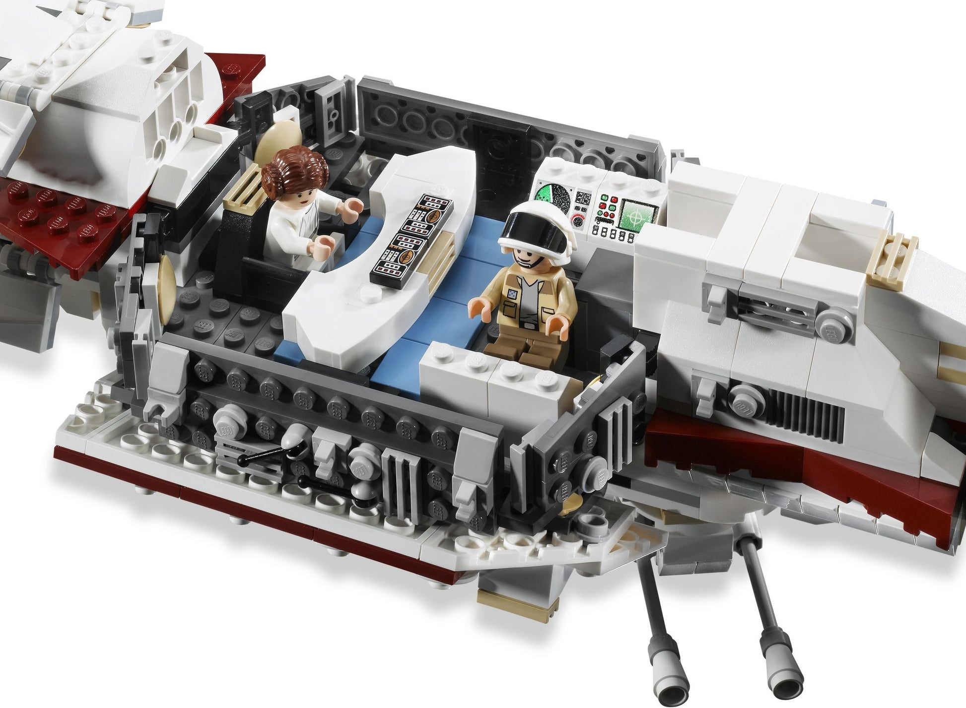- Lots of interior details including Leia’s desk and command center with seats for 2 minifigures!