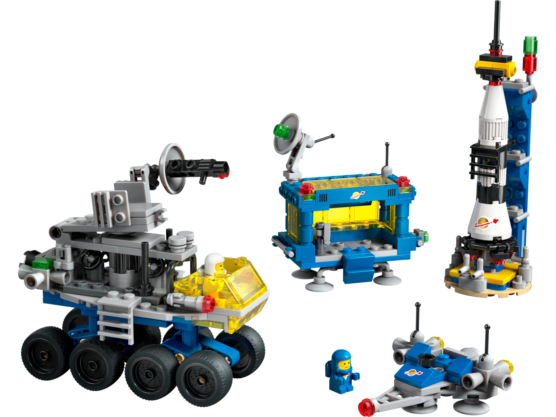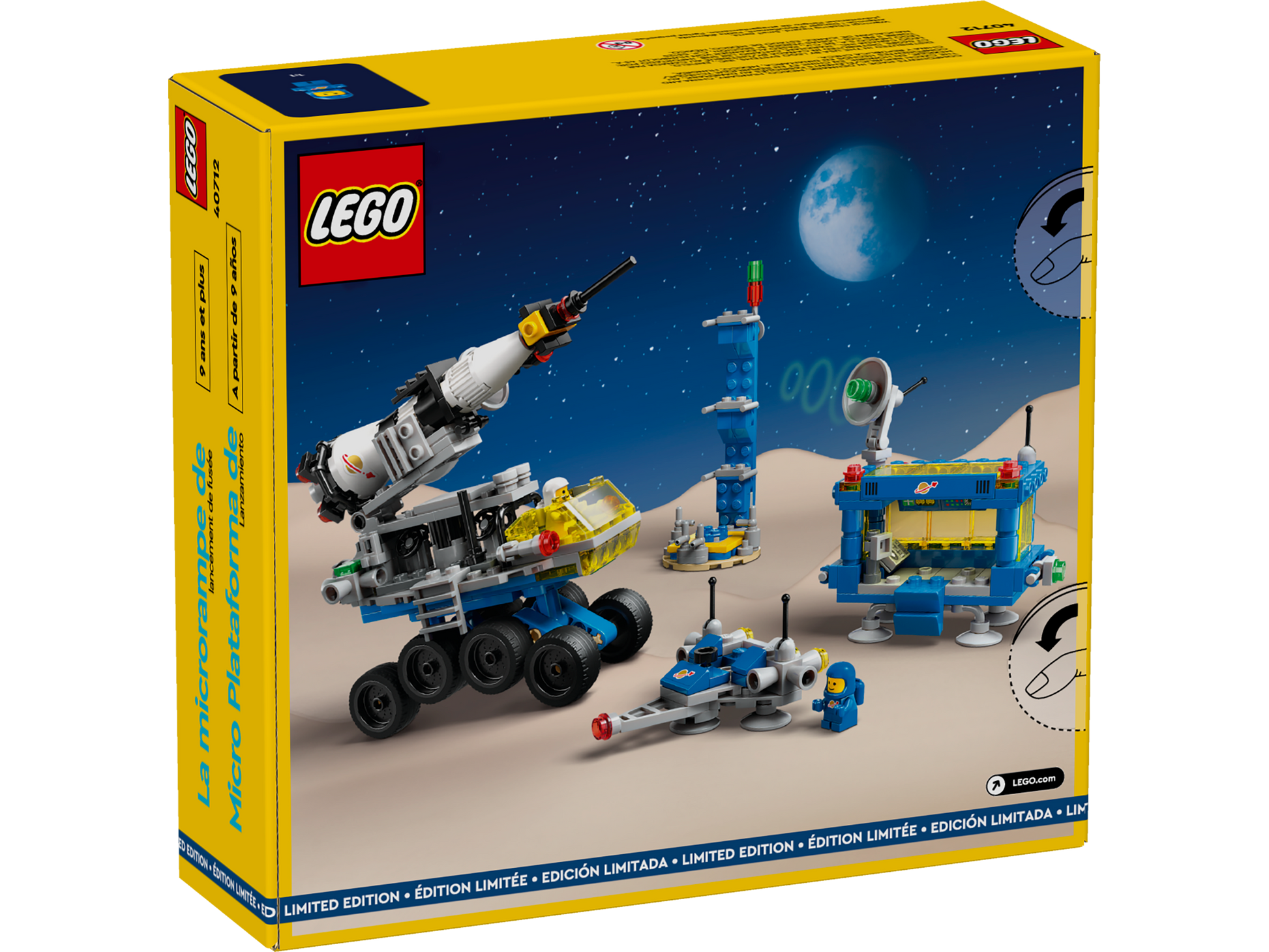 - LEGO® nostalgia set – The 4 micro models are inspired by iconic LEGO space sets produced between 1978 and 1983: the Alpha Rocket Base (483), Mobile Rocket Transport (6950) and Space Patrol (6803) kits