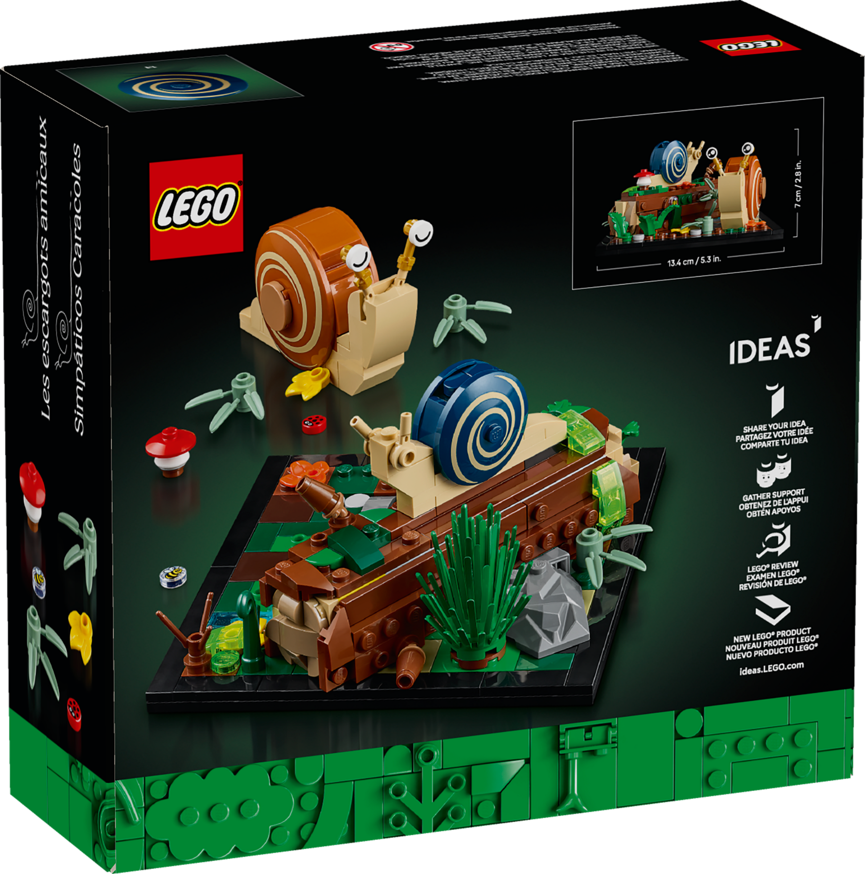 - Garden creatures display model – LEGO® Friendly Snails is a detailed build-and-display set designed for adult fans of nature and animals
