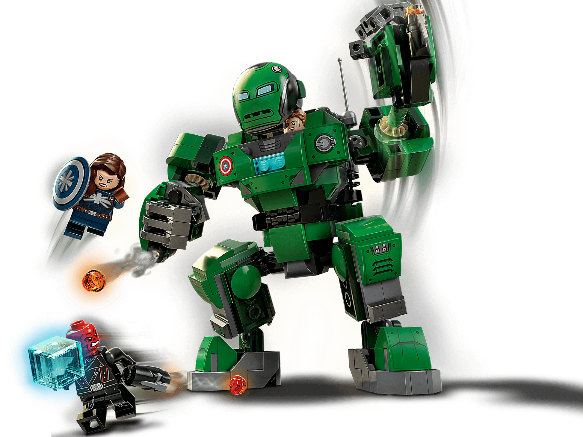 - Includes Captain Carter, Steve Rogers and Red Skull minifigures, plus a buildable mech with an opening cockpit and 2 stud shooters.